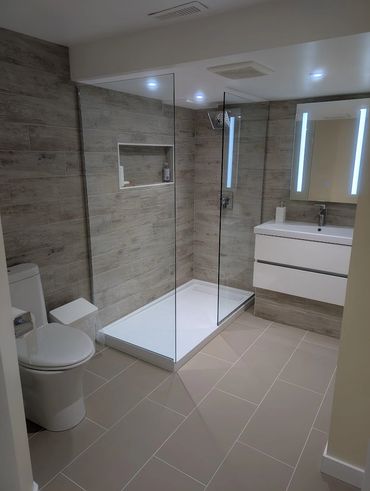 "Explore our diverse range of renovation services, including bathroom renovations, basement transformations, kitchen remodeling, as well as installations of new shingles, siding, windows, fences, and beyond. Reach out today to book your complimentary consultation."